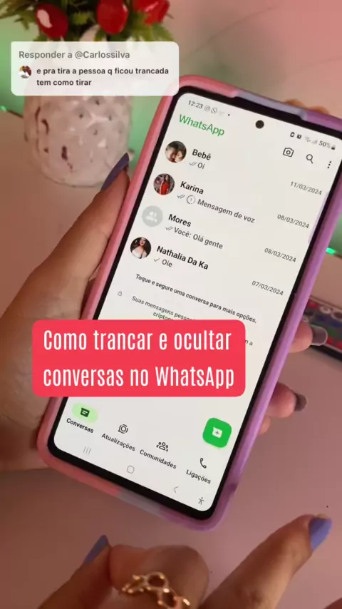 Responder a @Carlossilva(O150001044403299) Como trancar e ocultar uma conversa no WhatsApp #Whatsopp #dicasdewhatsap #android📲 #foryou💛✨