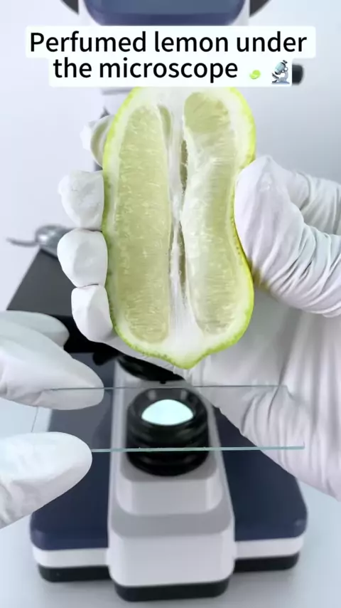Perfumed lemons magnified 400X are so cool!##microscope##funnyvideos