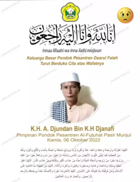 Hari kesedihan karena ditinggal Salah satu kiyai kharismatik Sekaligus Pimpinan pondok pesantren salfiyah Al futuhat. KH. Jundan djanafi #kyai #pesantrensalafi #balerombeng #alimUlama #banten
