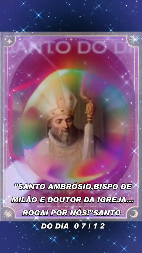 “Grande Ambrósio, responsável pela conversão de muitos santos e de grandes pecadores,a Ti pedimos a mesma graça sobre os pecadores atuais,os mais longes de Deus,os mais perdidos. Conduzi-os para a vontade do Pai e a santificação do povo. Amém”Santo Ambrósio, rogai por nós🙏🏼😇 #SANTODODIA07/12