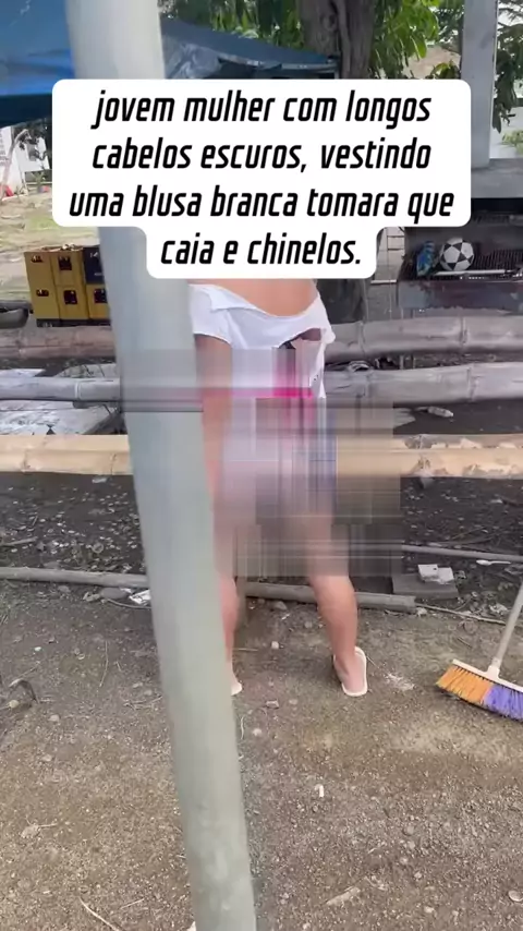 jovem mulher com longos cabelos escuros, vestindo uma blusa branca tomara que caia e chinelos. #vida #registrodevida