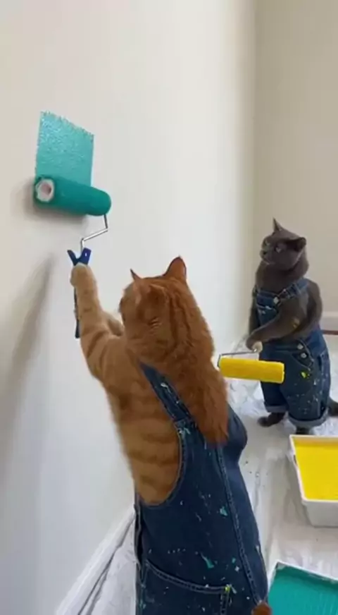 "Gatos pintando a parede e brigando ๐ŸŽจ๐Ÿ˜พ #quadrado*"