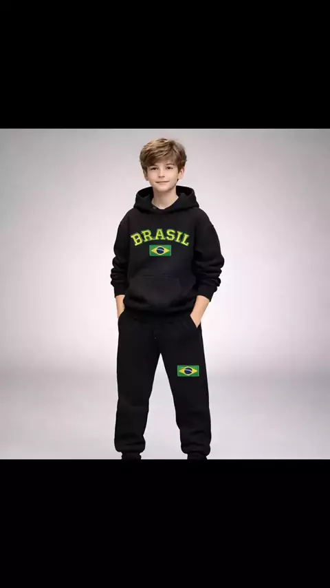 Conjunto Moletom Infantil Brasil com Capuz #moletominfantil #conjuntobrasil #roupainfantil #modainfantil