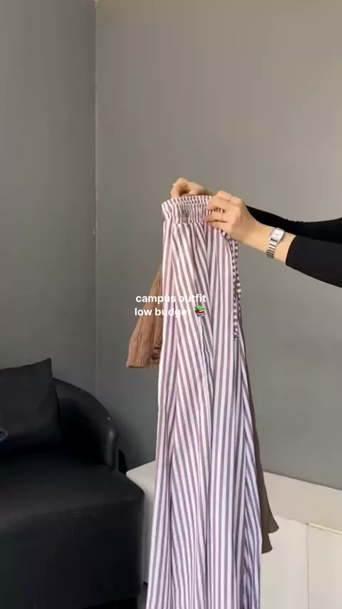 outfit aku simple tapi lucu 🥹🤎 stripe pants (mocca) — no 757a [@SALAAN] crop sweater — 720a totebag — 756a sepatu — 40a #