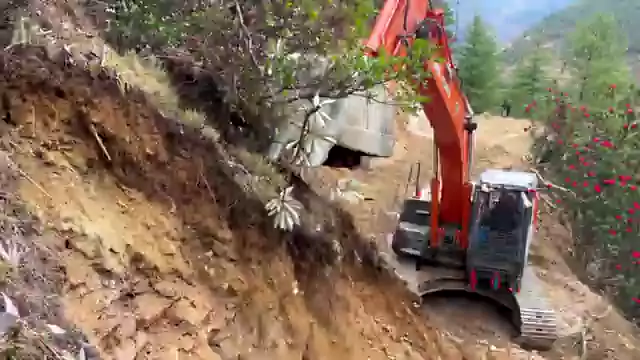 Excavator Backhoe Carving Rocky Mountain Beside Blooming Rhododendrons 🌺 ep-3