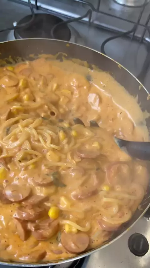 Macarrão com salsicha #receitas #macarrao