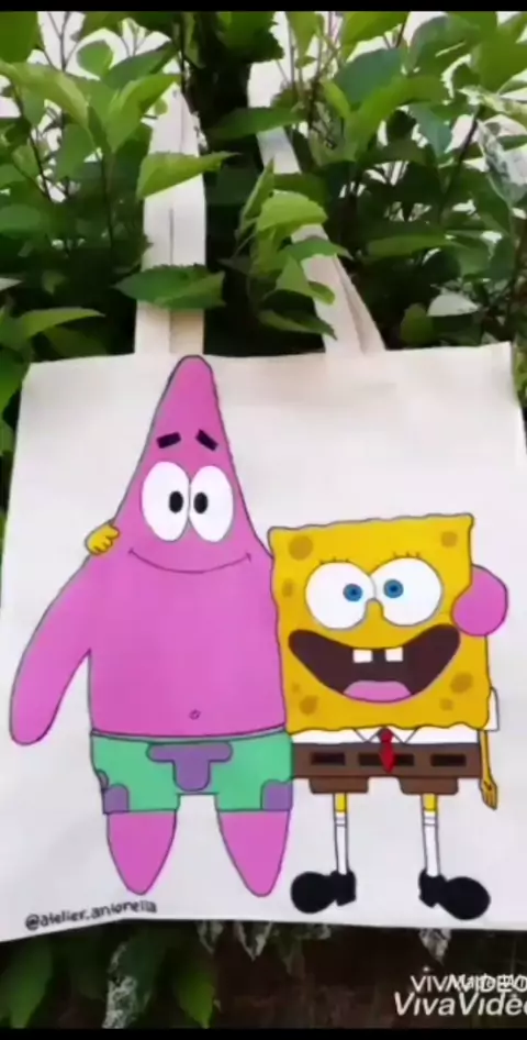 Ecobag Bob esponja e Patrick, pintado a mão por R$29,90. Compre pelo Instagram @atelier.antonella💚💚💚 ___________________ Entregas para todo Brasil💚