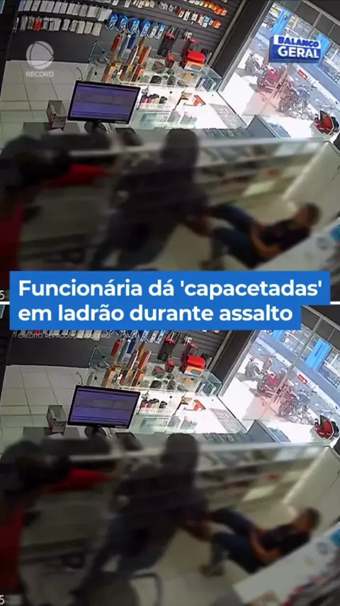 Um homem entra numa loja de celulares. Parece um cliente... só que não. O criminoso anuncia o assalto e rende duas funcionárias. Uma delas discute com o ladrão, que chega a pedir para ela se acalmar. A funcionária, então, pega um capacete e parte pra cima: dá “capacetadas” no assaltante! Veja como terminou essa confusão. 👉 Veja os flagrantes do #noticiasnews #BalançoGeral #assalto