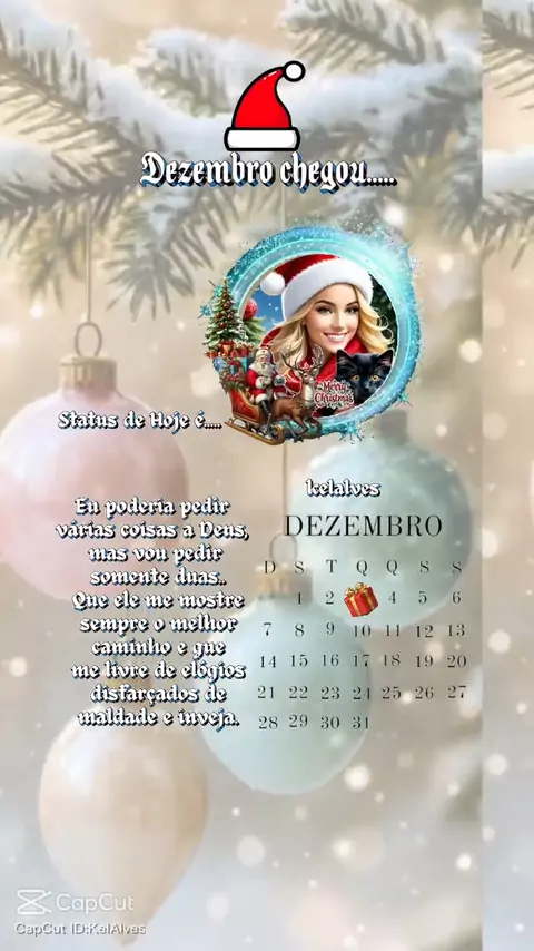 Bem-vindo, Dezembro! Que este último mês do ano nos traga leveza, cura, respostas e recomeços. Que tudo aquilo que pesou em 2025 seja deixado para trás, e que a esperança nos abrace com força renovada. Ainda dá tempo de viver milagres — Deus nunca chega atrasado. ✨ #kelalves #Kwai590704128 #fypcapcut