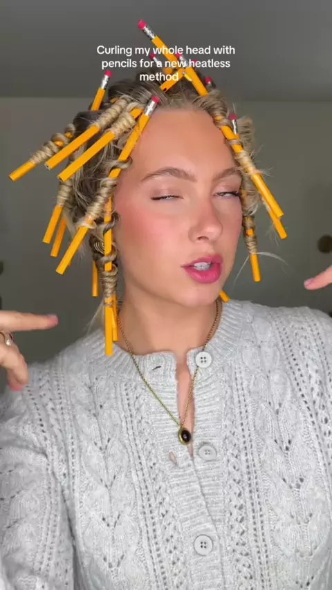 Testando este novo método de modelador sem calor usando lápis # # heatless # heatlesscurls # # trendyhairstyle # # hairtutorial # # シ