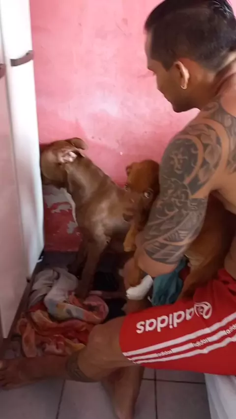e meu cachorro que ficou morrendo de ciúmes do filhote que levei pra casa 🤣🤣🤣🤣. #pitbull #PitMonster #cachorro