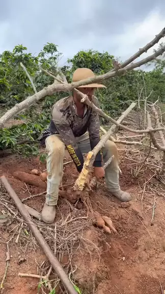 Se tiver tudo assim vai dar uns 60 kilos esse pé de mandioca 🤠🔥#trabalhomanual #agro #roça #mandioca #viral