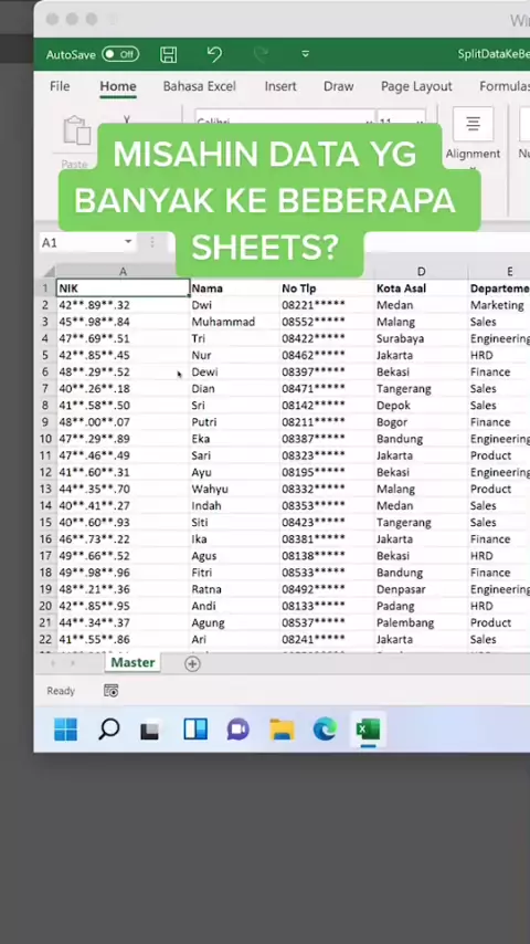 Pisahin data yg banyak ke beberapa SHEETS #excel #exceltips #exceltricks #tipsexcel #belajarexcel #samasamabelajar