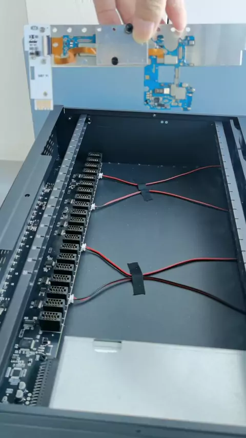 There are 20 mobile phones in one device, all of which can be operated simultaneously. #MobileFarm #Matrixequipment #promotions #Shortvideo #Privatedomaintraffic