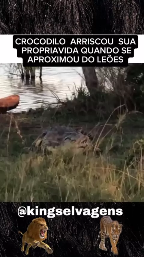 CROCODILO ARRISCOU SUA PROPRIA VIDA QUANDO SE APROXIMOU DOS LEÕES #animais #selvagem #animais #BomPraKWAI #viraliza
