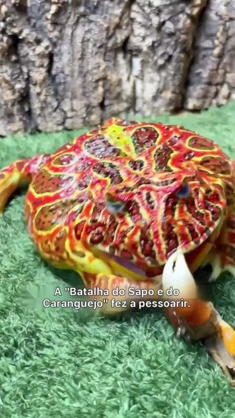 O sapo com chifres come caranguejos, foge e ri.