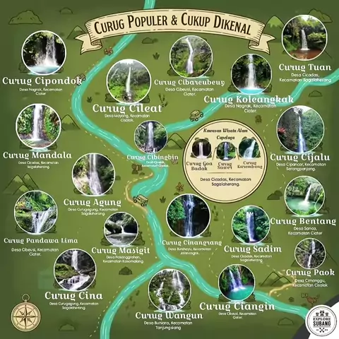 Part 1 - Edisi Curug di Kab. Subang ๐Ÿž Berikut daftar nama curug yang tercantum pada gambar tersebut: Curug Cipondok Curug Cileat Curug Cibareubeuy Curug Koleangkak Curug Tuan Curug Mandala Curug Cibingbin Curug Goa Badak Curug Sawer Curug Karembong Curug Cijalu Curug Agung Curug Pandawa Lima Curug Masigit Curug Cina Curug Cinangnang Curug Wangun Curug Sadim Curug Bentang Curug Paok Curug Ciangin __________ #exploresubang