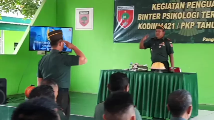 Brigjen TNI Ridwan, S. Sos, (Kadisbintalad) memberikan Pemateri Bintal Kejuangan kepada Prajurit dan Persit Kodim 1421/Pangkep