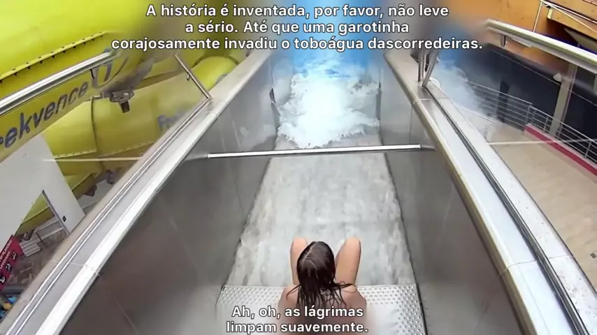 Até que uma menininha invadiu o toboágua torrencial e o perseguiu da primeira perspectiva. # engraçado.