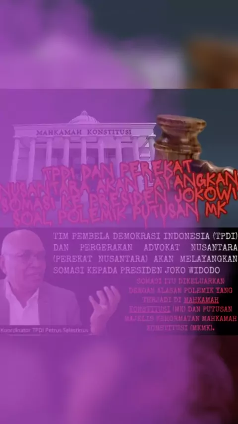 TPDI dan Perekat Nusantara akan layangkan somasi ke Presiden Jokowi soal polemik purusan MK #PolitikDinasti #SomasiMK #StopPolitikDinasti