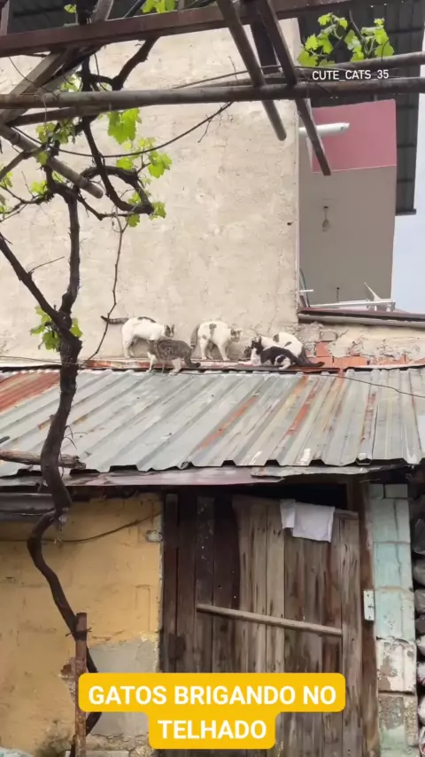 GATOS BRIGANDO NO TELHADO