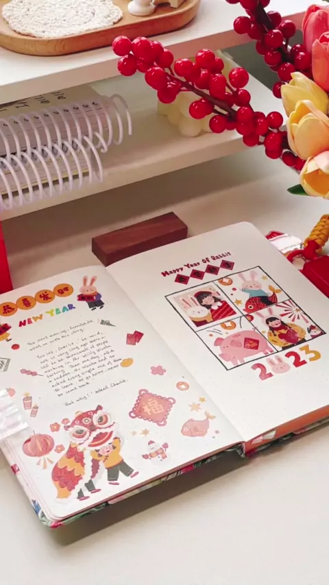 Contas de mão no ano do coelho A fita vem de Feliz Ano Novo. Cr. Queimando quer comer e puxar macarrão # Conta Diária # Ano Auspicioso do Coelho # Conta Mão