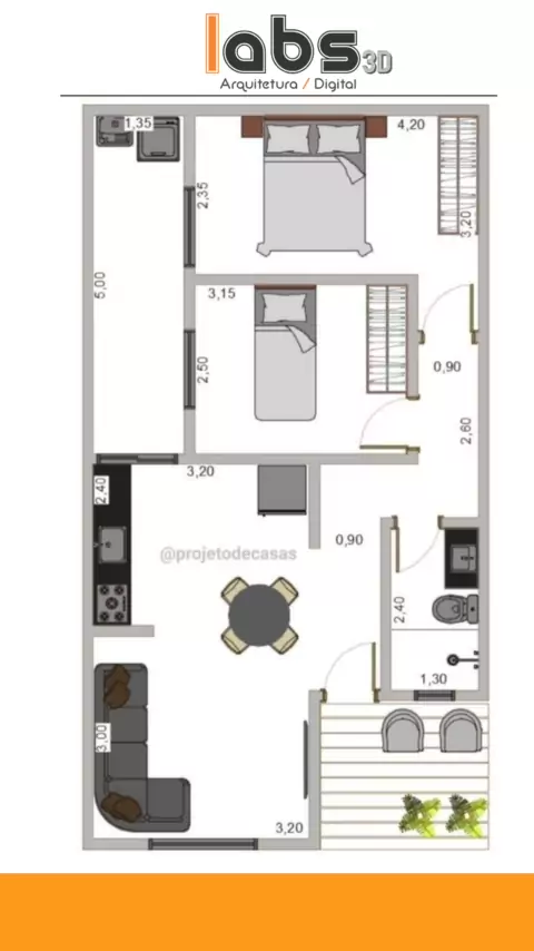Planta baixa de casa humanizada com dois dormitórios #casas #projeto #projetosdecasas #projeto #plantasdecasa