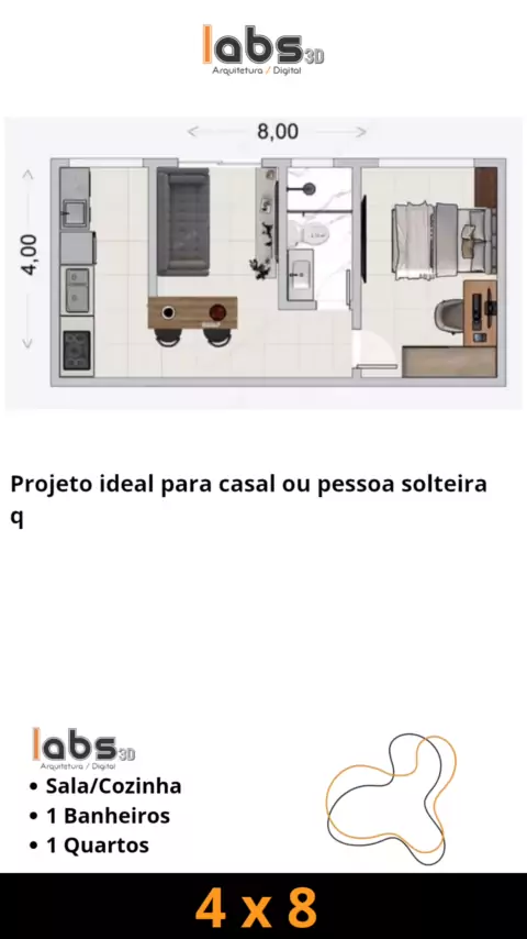 Planta baixa casa kitnet 4x8 perfeita para pessoa solteira ou casal que busca conforto e custo-benefício #viraliza #engenhariacivil #fy #projetos #IrmãosàObra
