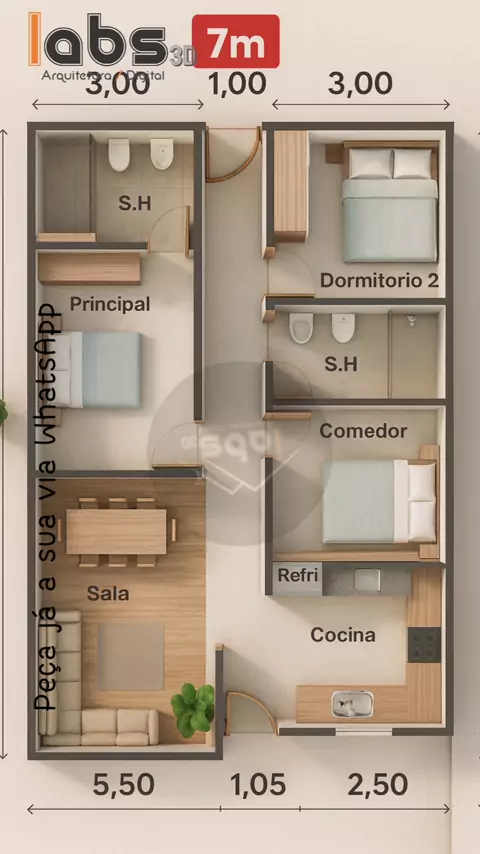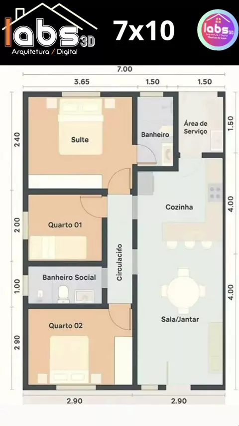 planta de casa 3x7 com medidas #plantas #plantasdeinterior #arquitetura #tecnologias #projetos