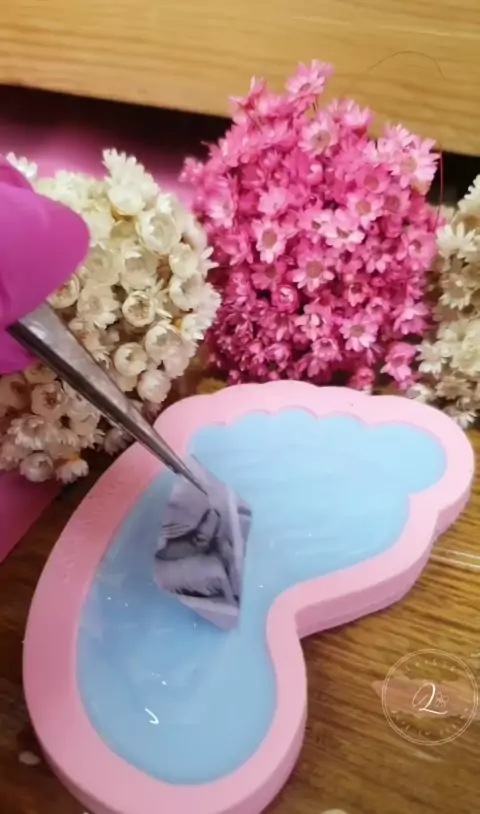 Um pedacim da produção desse chaveiro em formato de pézinho, com os dados do bebê ❤ você também pode fazer o seu 🥰 #BeBe #maedemenino #resin #chaveiros #eternizacao