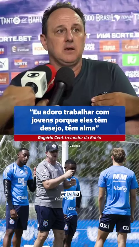 🗣 Rogério Ceni recusou folga para treinar os jovens do Bahia! Após triunfo de 3x0 sobre o Bahia de Feira, Rogério Ceni, treinador do Bahia, falou sobre o prazer que sente em treinar jovens jogadores. De acordo com Ceni, o trabalho acaba sendo mais intenso pois os atletas mais novos possuem um desejo extra. O técnico também afirmou ter aberto mão de uma folga no último domingo para trabalhar com os jovens atletas. #ComOEsquadrão #Baianão2026 #Baianão #GrupoCity #BBMP