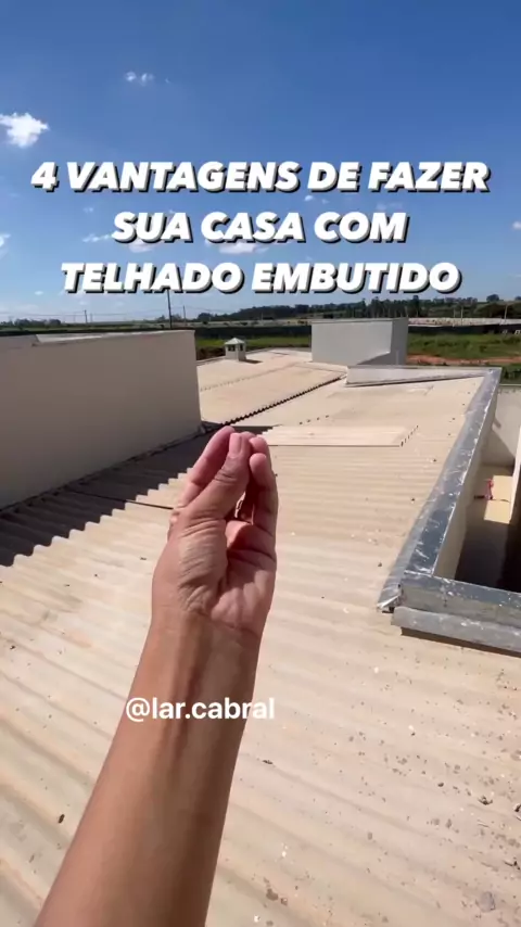 4 vantagens de fazer sua casa com TELHADO EMBUTIDO! Desvantagens na parte II do vídeo, já segue a gente pra não perder ✨ E você tá pensando em colocar telhado embutido aí na sua casa ? E se você tem conta sua experiência pra gente 👇 #obra #construcao #dicas #diariodeobra #telhados