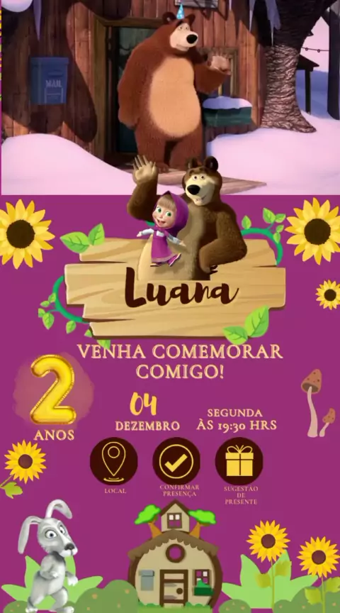 convite marcha e o urso Gold #kwainobbb #convitedigital #Explore #felizdiadascrianças #fy