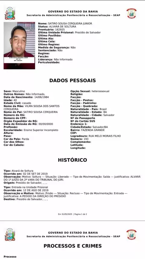 ABSURDO! Acredite se quiser: Jerônimo Rodrigues, governador do PT, nomeou um ex-detento, que está sendo acusado de tentativa de homicídio, para um cargo de confiança na Secretaria de Administração Penitenciária! Isso mesmo! Um acusado de crime contra a vida em cargo de DIRETOR de presídios! ISSO NÃO VAI FICAR ASSIM! Já entramos na Justiça para pedir a anulação desta nomeação absurda e que é um tapa na cara do povo baiano que sofre a cada dia pela insegurança pública.