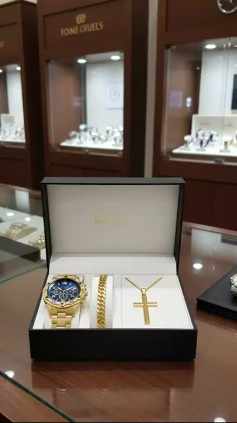 Relógio masculino original a prova d'água + pulseira e corrente com pingente cruz # # #viral #relogio #homemdevalor
