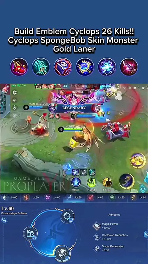 #MLBBSORA #MLBBXSpongeBob #MLBBFriendFest #MLBB #cyclops Build Emblem Cyclops 26 Kills!!Cyclops SpongeBob Skin Monster Gold Laner