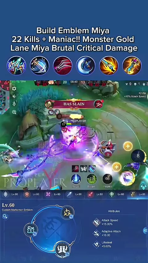 #MLBBM7 #MLBB #miya #miyamlbb #miya Build Emblem Miya 22 Kills + Maniac!! Monster Gold Lane Miya Brutal Critical Damage