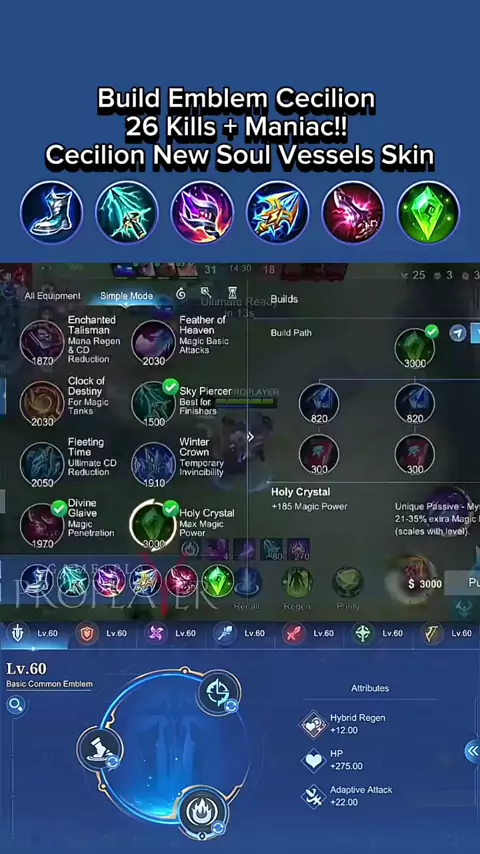 #ad #Heartopia #Heartopiaparty #mlbbidcreator #cecilionmlbb #cecilion Build Emblem Cecilion 26 Kills + Maniac!! Cecilion New Soul Vessels Skin