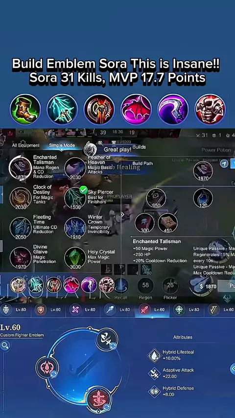 #MLBBMarcel #MLBBS40 #MLBBNEWHERO #sora #soramlbb Build Emblem Sora This is Insane!! Sora 31 Kills, MVP 17.7 Points
