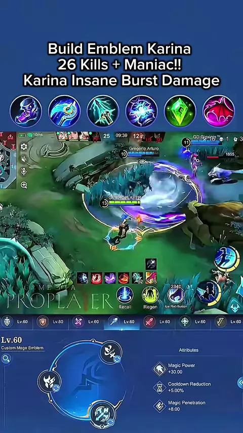 #MLBBMarcel#MLBBS40#MLBBNEWHERO#karina#karinamlbb Build Emblem Karina 26 Kills + Maniac!! Karina Insane Burst Damage