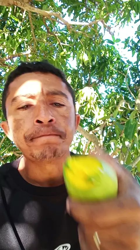 comendo manga em cima do pé