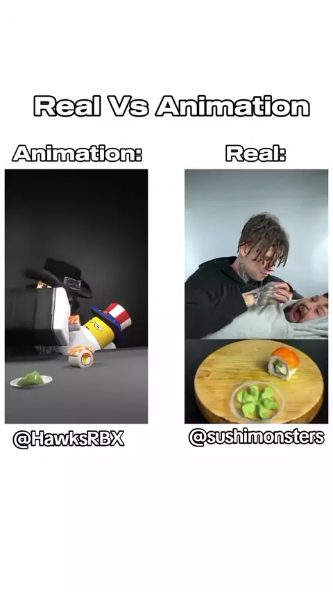 Real Vs Animation (Joke. don't take it so seriously) Original video (Real): @Sushi Monsters Roblox Animation By: @HawksRBX #☠️🗣️☠️ #roblox #sushimonster #meme #trend
