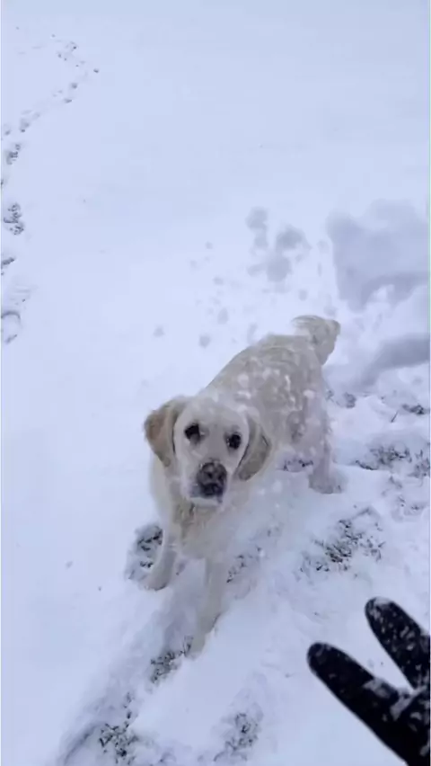 George Lopez looks a little different here #snow #goldenretriever #GeorgeLopez