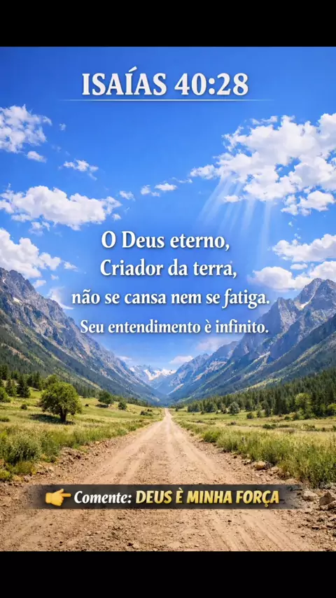 DEUS NUNCA SE CANSA DE CUIDAR DE VOCÊ | Isaías 40:28 Mesmo quando você se sente cansado ou sem forças, Deus continua trabalhando ao seu favor. Ele nunca se cansa, nunca perde o controle e conhece cada detalhe da sua vida. Receba essa palavra hoje e lembre-se: o Deus que criou o universo também cuida de você. 📖 Isaías 40:28 #biblia #versiculododia #palavradedeus #deusnocontrole #feemdeus