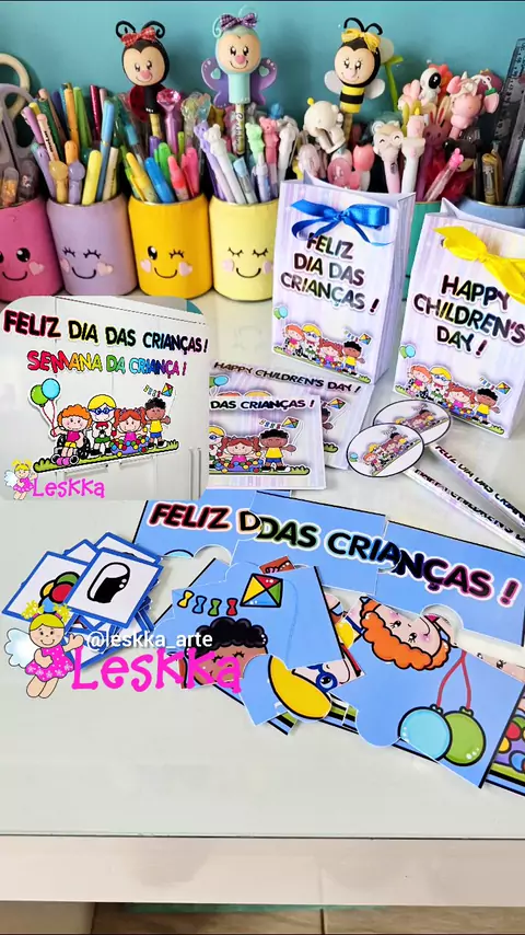 SEMANA DA CRIANÇA - BILÍNGUE Quer os arquivos? Pdfs em LESKKA.COM #diy #diadascrianças #leskkaarte #artecompapel #craft