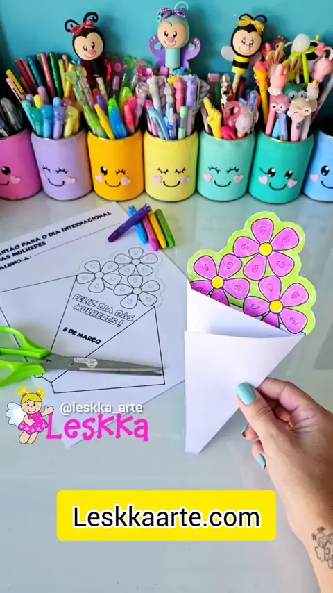 CARTÃO DIA DA MULHER 🩷 Quer o arquivo de presente 🎁? Vai lá no meu blog LESKKAARTE.COM #diy #craftideas #diadasmulheres #pedagogia #craft