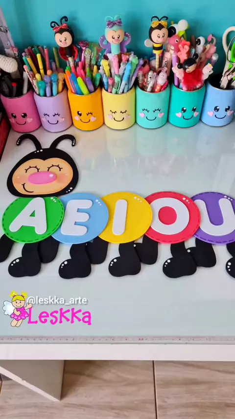 CENTOPEIA DAS VOGAIS Quer os moldes? Moldes de 🎁 em LESKKAARTE.COM #diy #vogais #centopeia #voltaasaulas #cartazes