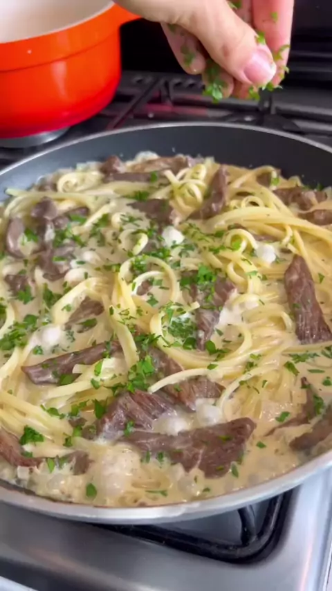 Linguine ao Molho de Gorgonzola e Iscas de Carne • 400g de alcatra • sal • Pimenta do reino • Azeite • 1/2 cebola picada • 1/2 colher de (sopa) de alho picadinho • 1 xícara de creme de leite • 60g de gorgonzola • 200g de linguine OU a massa que preferir • Cheiro verde créditos: @cozinhandocomtalita ... #estreladocarnavalkwai #Receita #comidaboa #comidatipica #foodofindia