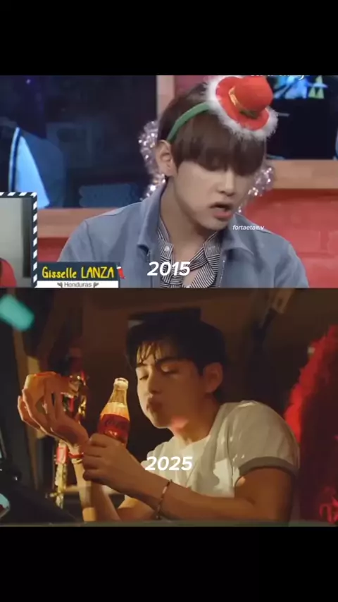 10 anos de diferença, mas ainda não há diferença na fofura dele 😭😭❤❤ #thv #KimTaehyung