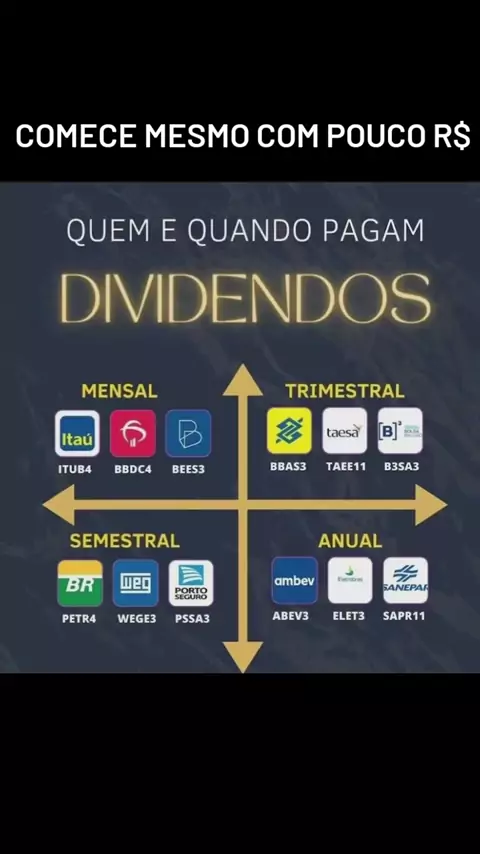 Algumas empresas que pagam Dividendos e como pagam esses Dividendos, trago neste vídeo algumas informações para você analisar e definir se faz sentido incluir em sua carteira de investimentos.Mesmo com pouco R$ você pode começar a investir e alcançar sua liberdade financeira. #ações #investimentos #dinheiro